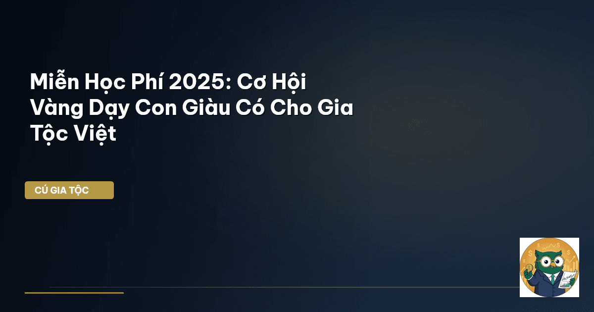 ⏱️ 12 phút đọc · 2306 từ Miễn Học Phí 2025-2026: Đừng Để Con Cháu Mất Cơ Hội Vàng Ông bà ta thường dạy: "Phi thương bất phú". Nhưng trong thời đại kim tiền ngày nay, "phi tài chính bất an" có lẽ mới là chân lý cốt lõi. Nhiều gia đình Việt, bao đời tích góp, gầy dựng cơ nghiệp, đến khi truyền lại cho con cháu lại đối mặt với nguy cơ hao hụt không đáng có. Năm 2025-2026, một chính sách lịch sử sẽ được triển khai: 100% học sinh công lập từ mầm non đến THPT được miễn học phí. Đây không chỉ là tin vu…