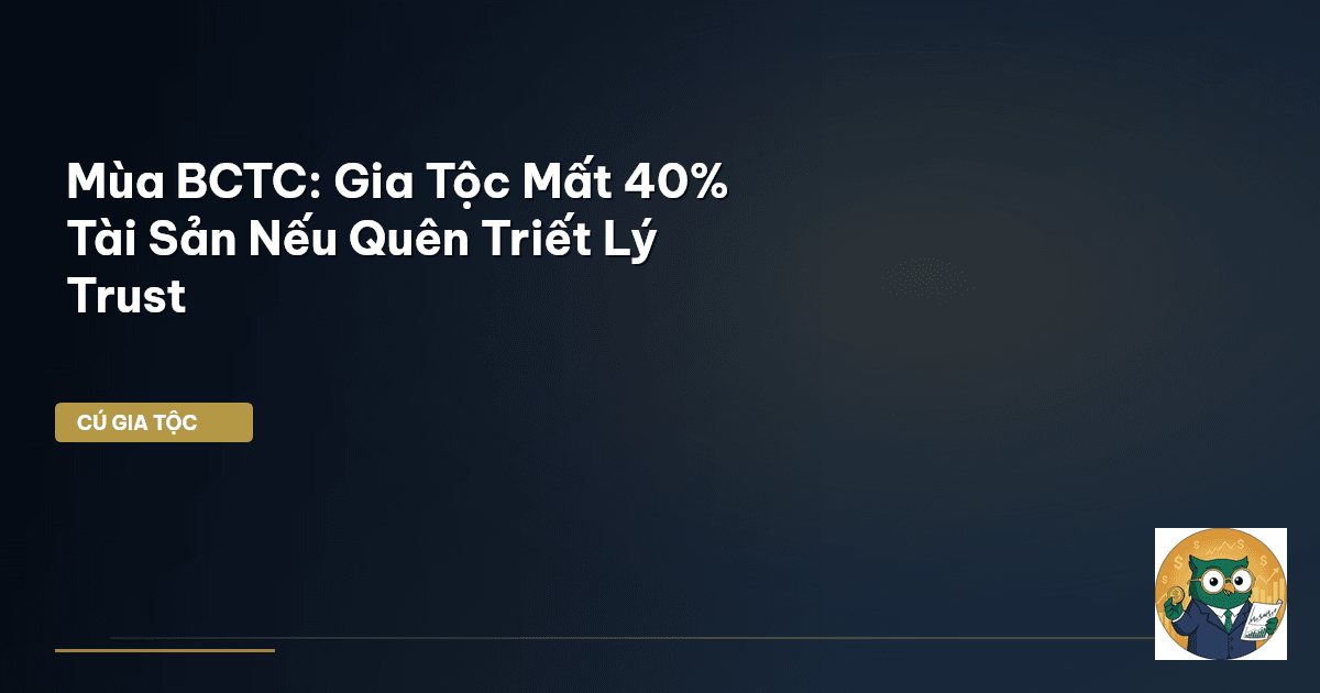 ⏱️ 15 phút đọc · 2866 từ Giới Thiệu: Ông Bà Để Lại 5 Tỷ – Con Cháu Mất 40% Vì KHÔNG BIẾT Trust Là Gì? Mỗi độ mùa Báo cáo tài chính (BCTC) về, người người nhà nhà lại tất bật 'tảo mộ' sổ sách, rà soát lợi nhuận, chi phí của các doanh nghiệp mình đầu tư. Nhưng liệu mấy ai trong chúng ta đã từng 'tảo mộ' lại cấu trúc tài chính của chính gia tộc mình? Liệu gia sản cả đời ông bà tích cóp, khi chuyển giao cho con cháu, có thật sự được vẹn nguyên? Thực tế phũ phàng ở Việt Nam là nhiều gia đình, đặc biệ…