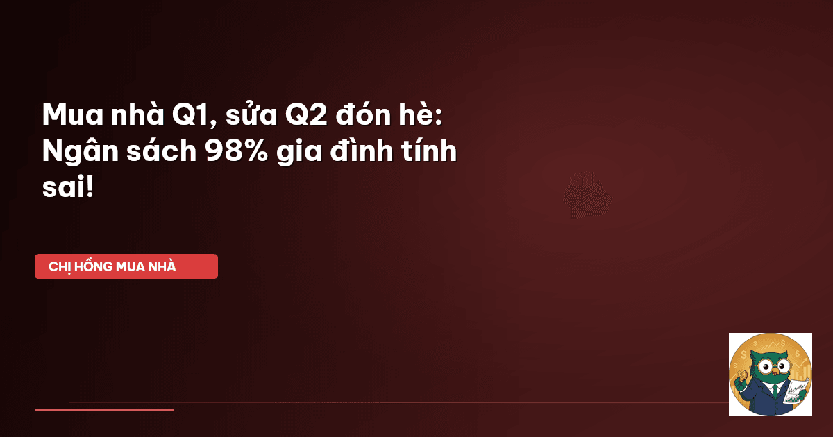 ⏱️ 10 phút đọc · 1908 từ Giới Thiệu: Mua nhà đón hè – Giấc mơ đẹp hay 'cơn ác mộng' ngân sách? Ấy chết! Bà con mình ơi, mùa xuân vừa qua bao nhiêu gia đình đã rộn ràng lắm đúng không? Có khi là rộn ràng sắm sửa đón Tết, có khi là rộn ràng đặt cọc mua căn nhà đầu tiên sau bao năm tích cóp. Rồi giờ nhìn lịch sang quý 2, tự nhủ: "À, giờ là lúc sửa sang, tút tát lại cho ngôi nhà mới tinh tươm, đón cái nắng hè rực rỡ và những buổi chiều mát mẻ bên gia đình". Nghe thì có vẻ mỹ mãn lắm, nhưng Chị Hồng …