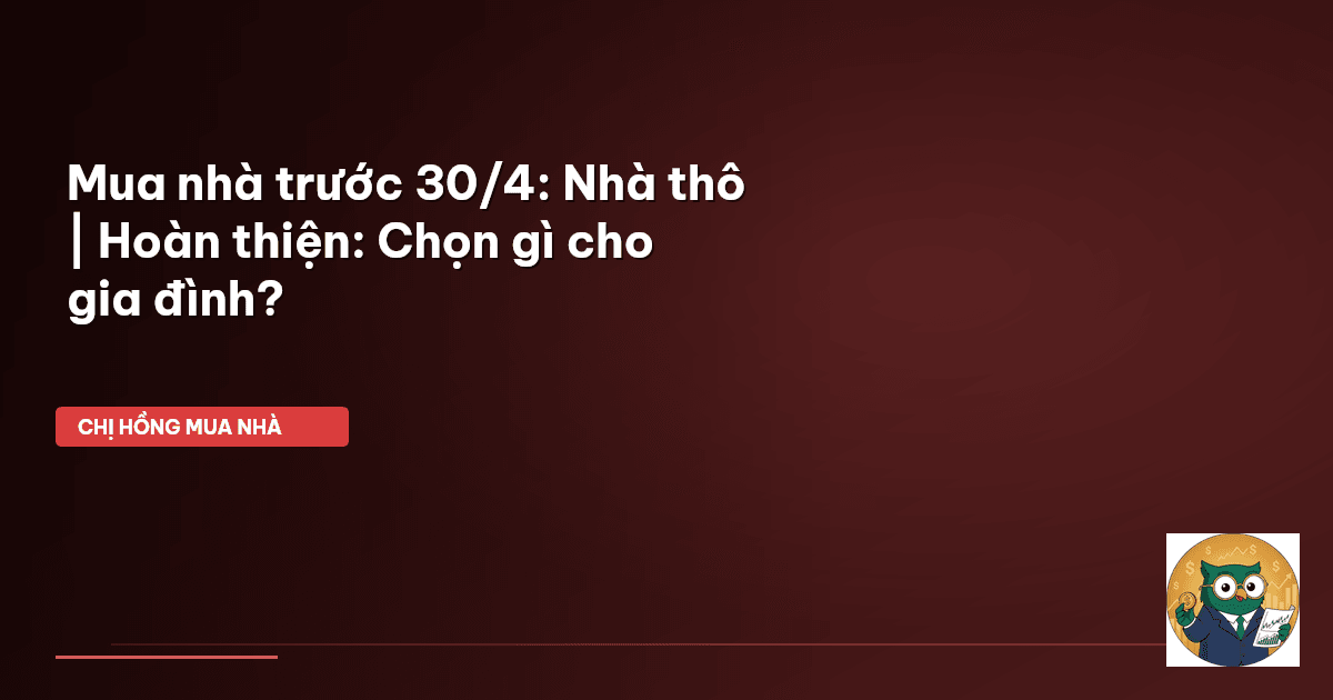 ⏱️ 12 phút đọc · 2244 từ Giới Thiệu: Mua nhà trước 30/4, đâu là cơ hội vàng cho mẹ bỉm? Chào cả nhà Cú Thông Thái! Mấy nay Chị Hồng nhận được vô vàn tin nhắn hỏi về chuyện mua nhà trước 30/4. Có mẹ bỉm nào đang đứng trước lựa chọn nan giải là nên mua nhà đã hoàn thiện hay nhà xây thô không nè? Đây không chỉ là câu chuyện tiền bạc đâu nha, mà còn liên quan đến công sức, thời gian và cả những rủi ro mình không ngờ tới nữa đó. Nhiều gia đình cứ nghĩ mua nhà xây thô thì rẻ hơn được kha khá, để dành …