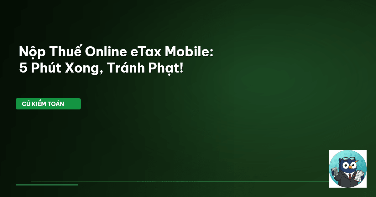 ⏱️ 10 phút đọc · 1906 từ Giới Thiệu: Đừng Để Nộp Thuế Là Nỗi Ám Ảnh! Thời đại số hóa đã thay đổi mọi thứ, và nộp thuế cũng không ngoại lệ. Còn bao nhiêu người vẫn nghĩ nộp thuế là phải xếp hàng, điền mẫu giấy tờ phức tạp? Cú Kiểm Toán đã soi kỹ, và sự thật là: đó là quá khứ. Hiện tại, chỉ cần chiếc điện thoại thông minh, việc hoàn thành nghĩa vụ thuế giờ đây chỉ mất vỏn vẹn 5 phút. Đây không phải lời quảng cáo, đây là thực tế với ứng dụng eTax Mobile của Tổng cục Thuế. Người nộp thuế cá nhân và …
