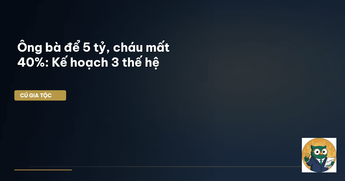 ⏱️ 17 phút đọc · 3214 từ Giới Thiệu: Di Sản 5 Tỷ – Ẩn Số Mất 40% Ông bà để lại 5 tỷ, nghe có vẻ là một món quà lớn, một điểm tựa vững chắc cho con cháu. Nhưng Ông Chú Vĩ Mô đã chứng kiến không ít trường hợp, chỉ sau một đến hai thế hệ, khối tài sản ấy đã hao hụt đáng kể, thậm chí mất đi 40% hay hơn thế nữa. Đôi khi không phải do thị trường biến động, mà do chính những sai lầm trong cách quản lý và chuyển giao tài sản nội bộ gia đình. Ở Việt Nam, văn hóa gia đình truyền thống rất coi trọng việc đ…