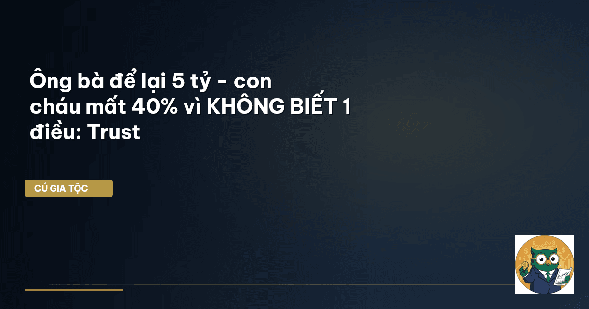 ⏱️ 13 phút đọc · 2539 từ Ông bà để lại 5 tỷ — con cháu mất 40% vì KHÔNG BIẾT 1 điều: Trust là gì? Kính thưa quý vị, Ông Chú Vĩ Mô đã từng chứng kiến không ít câu chuyện đau lòng. Ông bà, cha mẹ cả đời cày cuốc, tích góp được bạc tỷ, thậm chí hàng chục tỷ đồng. Thế nhưng, chỉ qua một thế hệ, hoặc tệ hơn là ba đời, khối tài sản đó bỗng chốc tan biến như bong bóng xà phòng . Tại Việt Nam, nhiều gia đình vẫn chỉ trông cậy vào di chúc truyền thống, hoặc đơn giản là để mặc con cháu tự định đoạt. Nghị …