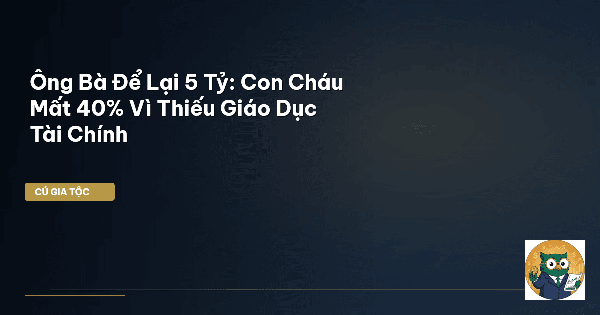 ⏱️ 13 phút đọc · 2465 từ Ông Bà Để Lại 5 Tỷ: Con Cháu Mất 40% Vì Thiếu Giáo Dục Tài Chính Sớm Chào bạn, Ông Chú Vĩ Mô đây. Trong hành trình tích lũy và xây dựng cơ nghiệp, cha mẹ, ông bà chúng ta đã phải đổ mồ hôi, xương máu, và biết bao đêm trằn trọc. Từ miếng đất tổ, cơ sở kinh doanh, cho đến những khoản tiền tiết kiệm quý giá, tất cả đều là thành quả của một đời cống hiến. Thế nhưng, bạn có biết không, rất nhiều gia đình Việt Nam đang đối mặt với một thực tế phũ phàng: tài sản quý giá họ để l…
