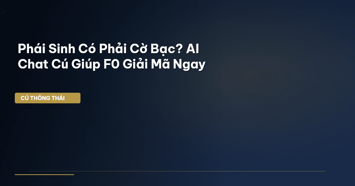 🎯 Key Takeaways1Phái sinh không phải cờ bạc mà là công cụ tài chính có giá trị dựa trên tài sản cơ sở, được dùng để phòng ngừa rủi ro hoặc đầu cơ.2Đòn bẩy tài chính là điểm mạnh nhưng cũng là rủi ro lớn nhất của phái sinh. Hãy quản lý vốn và rủi ro thật chặt chẽ, luôn có điểm dừng lỗ.3AI Chat Cú là 'quân sư' đắc lực giúp F0 hiểu thuật ngữ, phân tích thị trường, và quản lý rủi ro. Tuy nhiên, AI là công cụ hỗ trợ, không phải người ra quyết định thay bạn.🦉 Cú Thông Thái khuyênTheo dõi thêm phân tích vĩ mô và công cụ quản lý tài sản tại vimo.cuthongthai.vn