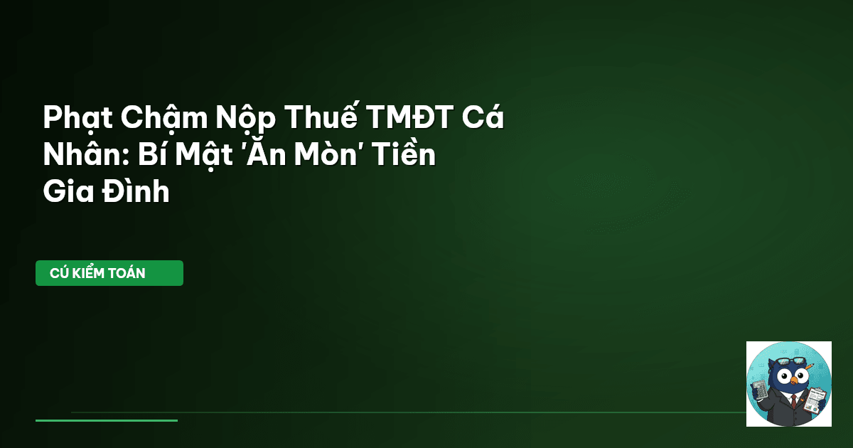 Anh Minh, 45 tuổi, là chủ một shop bán đồ điện tử online có tiếng tại Cầu Giấy, Hà Nội. Với thu nhập bình quân 25 triệu đồng/tháng và hai con đang tuổi ăn học, anh Minh luôn cố gắng quản lý tài chính một cách chặt chẽ. Tuy nhiên, thời gian đầu mới kinh doanh online, anh đã từng “ngã ngửa” vì bị phạt hành chính 7 triệu đồng do chưa đăng ký kinh doanh và không kê khai thuế đúng hạn. Bài học đắt giá đó khiến anh Minh không dám lơ là thêm lần nào nữa. Anh tìm đến hệ thống Cú Thông Thái, đặc biệt là công cụ Thuế Thương Mại Điện Tử. Anh đã dùng công cụ này để tính toán chính xác nghĩa vụ thuế mỗi quý, đồng thời đặt lịch nhắc nhở nộp hồ sơ và nộp tiền thuế. Anh cũng thường xuyên tham khảo các bài viết của Cú Kiểm Toán về các chính sách thuế mới. Nhờ sự chủ động và sử dụng công cụ hiệu quả, anh Minh không chỉ tránh được các khoản phạt không mong muốn mà còn quản lý tốt hơn dòng tiền của shop và gia đình. Anh hiểu rằng việc tuân thủ thuế không phải là gánh nặng, mà là một phần tất yếu để kinh doanh bền vững và bảo vệ tài chính cho các con.❓ Câu Hỏi Thường Gặp (FAQ)❓ Mức phạt chậm nộp thuế TMĐT cá nhân được tính như thế nào?Mức phạt chậm nộp thuế được tính là 0.03% trên số tiền thuế chậm nộp cho mỗi ngày chậm nộp, bắt đầu từ ngày kế tiếp sau khi hết thời hạn nộp thuế. Ngoài ra, còn có thể bị phạt hành chính vì chậm nộp hồ sơ khai thuế.❓ Việc chậm nộp thuế TMĐT ảnh hưởng đến tài chính gia đình ra sao?Chậm nộp thuế trực tiếp làm giảm thu nhập khả dụng của gia đình do phải trả tiền phạt. Khoản tiền này có thể là chi phí sinh hoạt thiết yếu như tiền học cho con, tiền điện nước hoặc chi phí xăng xe, gây áp lực tài chính và stress không đáng có.❓ Cá nhân kinh doanh online cần làm gì để tránh bị phạt chậm nộp thuế?Cần đăng ký thuế đúng quy định, kê khai và nộp thuế đầy đủ, đúng thời hạn. Nên sử dụng các công cụ hỗ trợ để lập lịch nhắc nhở, tách biệt tài chính cá nhân và kinh doanh, đồng thời tận dụng các khoản giảm trừ gia cảnh hợp pháp để tối ưu hóa nghĩa vụ thuế.📄 Nguồn Tham Khảo