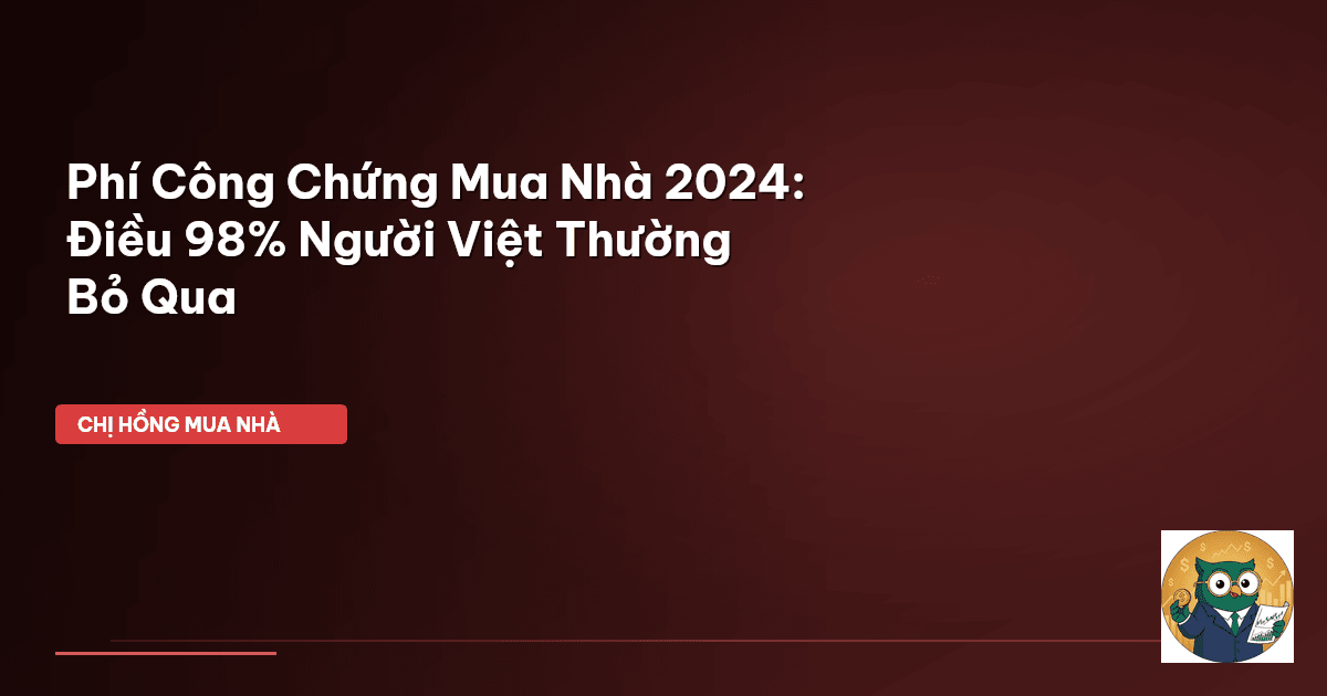⏱️ 12 phút đọc · 2312 từ Chào cả nhà, Chị Hồng lại lên sóng đây! Mấy nay Chị Hồng nhận được nhiều câu hỏi của các mẹ bỉm, các cặp vợ chồng trẻ về chuyện mua nhà lắm. Ai cũng hào hứng khi tìm được căn ưng ý, gom góp đủ tiền cọc rồi. Nhưng mà đến lúc ký giấy tờ, ra công chứng thì ôi thôi, bao nhiêu là "phí phát sinh" mà trước đó không ai nhắc tới. Lúc đó mới tá hỏa, có khi hụt cả mấy chục triệu bạc! Nhiều người cứ nghĩ mua nhà là chỉ cần lo tiền cọc, tiền vay ngân hàng thôi. Nhưng thực ra, cái kho…