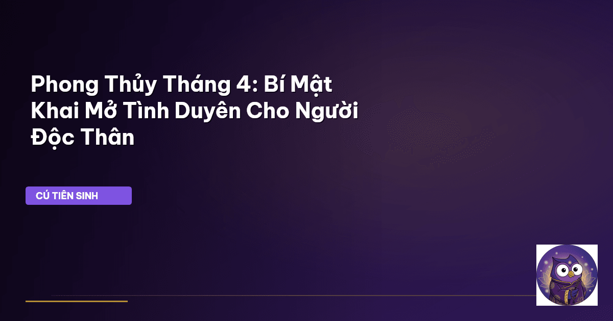 ⏱️ 13 phút đọc · 2421 từ Giới Thiệu Hỡi những tâm hồn đang miệt mài kiếm tìm nửa kia của mình, Cú Tiên Sinh biết rằng tháng Tư thường mang đến một cảm giác vừa lãng mạn, vừa chất chứa bao hoài niệm. Khi vạn vật bừng tỉnh sau giấc ngủ đông, khi cây cối đâm chồi nảy lộc và muôn hoa đua sắc, ấy cũng là lúc năng lượng tình yêu, tình duyên trở nên vô cùng mạnh mẽ trong vũ trụ. Tuy nhiên, không phải ai cũng biết cách nắm bắt và khơi thông dòng chảy vượng khí này để chiêu gọi một lương duyên tốt đẹp ch…