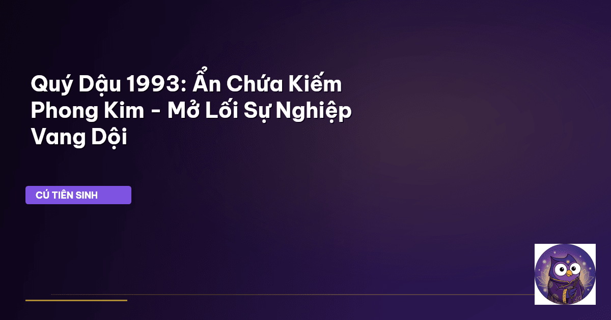 ⏱️ 13 phút đọc · 2506 từ Giới Thiệu: Kiếm Phong Kim – Dấu Ấn Của Một Mệnh Cách Đặc Biệt Người xưa dạy: vạn vật trong vũ trụ đều mang một "khí" riêng, và mỗi con người khi sinh ra cũng gánh vác một mệnh vận được hình thành từ tinh hoa ngũ hành. Trong vòng quay Lục Thập Hoa Giáp, tuổi Quý Dậu 1993 xuất hiện như một dấu son đặc biệt, mang trong mình nạp âm Kiếm Phong Kim – thứ Kim sắc bén nhất, tiềm ẩn cả sức mạnh và những thử thách không ngừng. Cú Tiên Sinh cho rằng, hiểu rõ mệnh cách không phải đ…