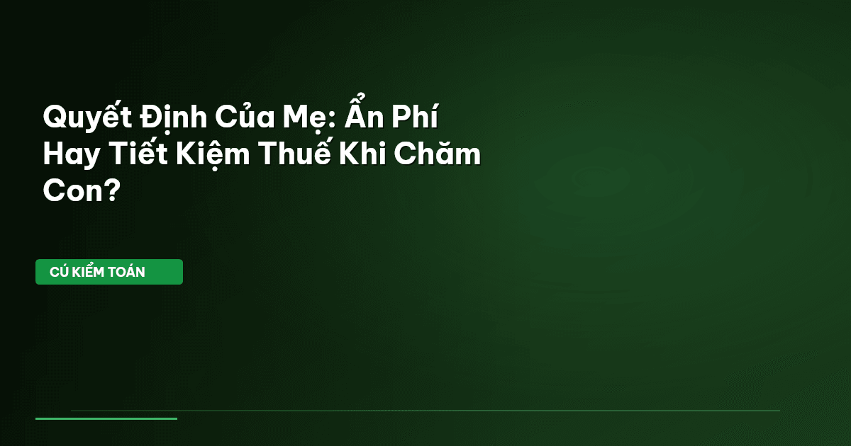 ⏱️ 13 phút đọc · 2424 từ Giới Thiệu: Bài Toán Tài Chính Của Mẹ Hiện Đại Mỗi ngày, hàng ngàn mẹ bỉm sữa Việt Nam đứng trước một quyết định lớn: quay lại công sở hay dành thời gian trọn vẹn ở nhà chăm sóc con nhỏ? Đây không chỉ là một lựa chọn cảm tính hay xoay quanh giá trị tinh thần. Cú Kiểm Toán khẳng định: đây chính là một bài toán tài chính phức tạp, đòi hỏi phải soi kỹ từng con số, từng quy định thuế, bảo hiểm xã hội (BHXH) để đảm bảo lợi ích tối ưu cho gia đình. Trong bối cảnh kinh tế hiện …