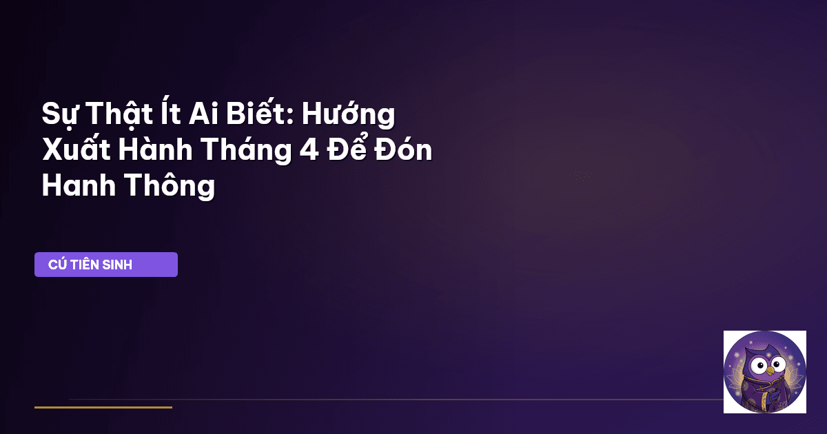 ⏱️ 13 phút đọc · 2571 từ Giới Thiệu: Mật Mã Hướng Xuất Hành Tháng 4 Và Cánh Cửa Hanh Thông Kính chào quý vị hữu duyên đang tìm kiếm lời giải cho những trăn trở của cuộc đời! Cú Tiên Sinh biết rằng, mỗi khi đứng trước ngưỡng cửa của một tháng mới, đặc biệt là tháng 4 với những biến chuyển giao mùa, lòng người thường dấy lên niềm hy vọng về một khởi đầu tốt đẹp, nhưng cũng không khỏi vương vấn nỗi băn khoăn về những điều chưa biết. Hướng xuất hành – một khái niệm tưởng chừng đơn giản – lại ẩn chứa…