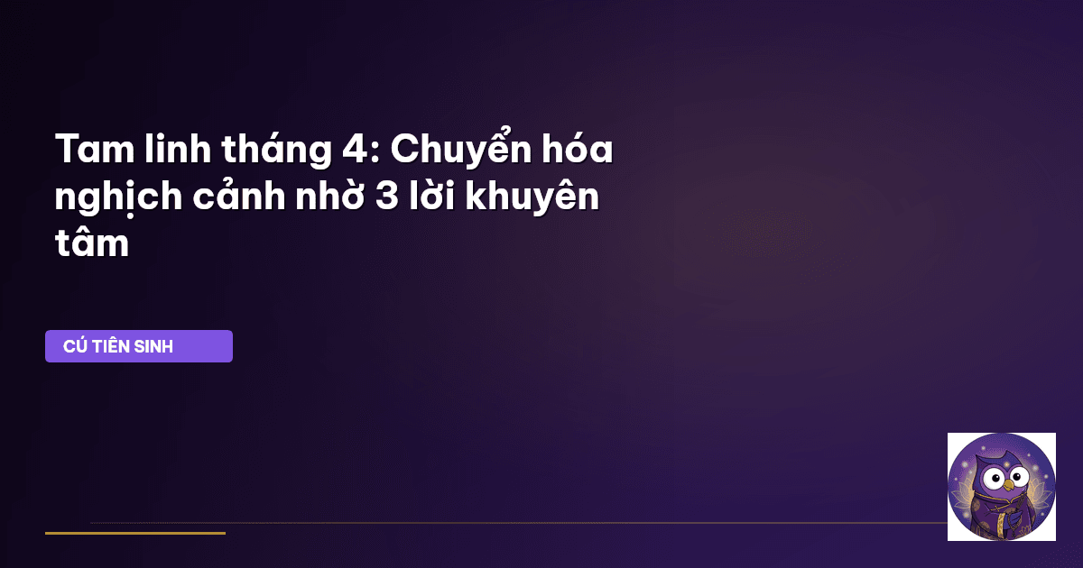 Với những chiêm nghiệm sâu sắc về Tam Linh, Cú Tiên Sinh xin gửi gắm ba lời khuyên chân thành, như ngọn hải đăng soi đường cho quý vị trong hành trình vượt qua khó khăn và tìm thấy bình an trong tháng Tư này. Hãy lắng nghe bằng cả tấm lòng, vì đây là những trí tuệ đã được đúc kết qua nhiều thế hệ.
