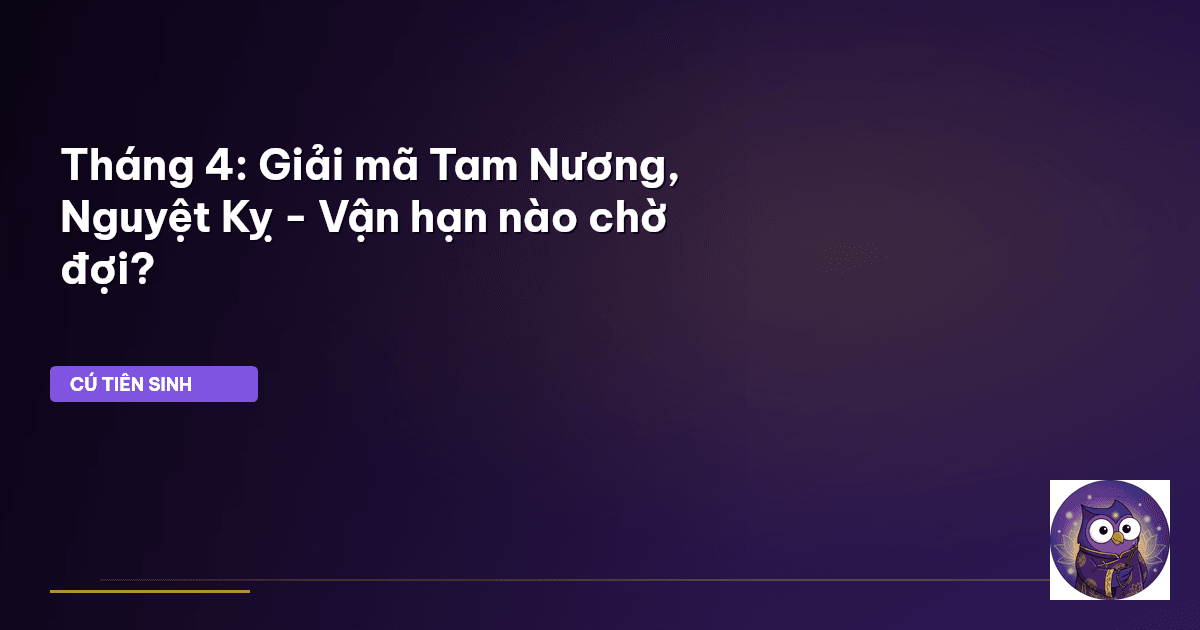 ⏱️ 14 phút đọc · 2723 từ Giới Thiệu Kính chào quý thiện hữu, Cú Tiên Sinh lại được hân hạnh đồng hành cùng quý vị trên hành trình khám phá những bí ẩn của vũ trụ và dòng chảy vận mệnh. Khi tiết trời chuyển mình sang tháng Tư, cái nắng ấm áp lan tỏa, cây cối đâm chồi nảy lộc, lòng người cũng phơi phới bao dự định. Thế nhưng, trong dòng chảy của thời gian, người xưa đã cẩn trọng chỉ ra những ngày mà vạn sự khởi đầu thường gặp phải trắc trở, đó chính là những ngày Tam Nương và Nguyệt Kỵ . Người xưa…