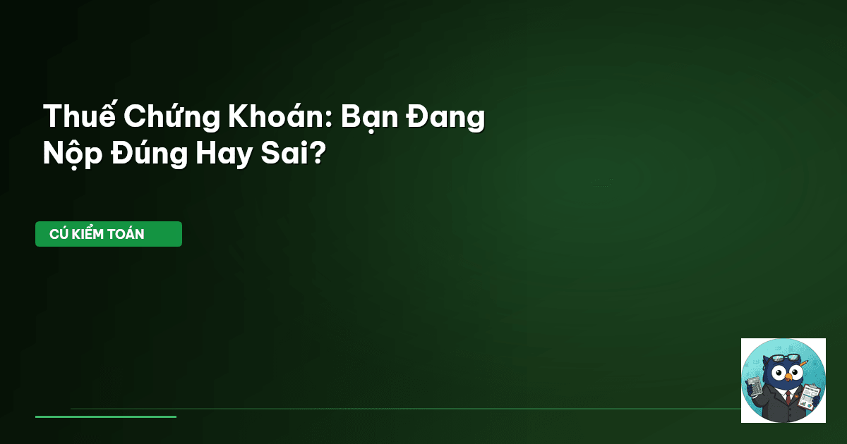 ⏱️ 11 phút đọc · 2068 từ Giới Thiệu: Thu nhập chứng khoán — Đừng để Cú Kiểm Toán phải 'tuýt còi' Thị trường chứng khoán Việt Nam đang sôi động. Nhiều nhà đầu tư cá nhân, đặc biệt là các F0, hào hứng với lợi nhuận. Nhưng ít ai thực sự hiểu rõ về nghĩa vụ thuế từ các khoản thu nhập này. Kê khai sai, nộp thiếu, hay thậm chí bỏ sót có thể khiến bạn vướng vào rắc rối pháp lý. Cú Kiểm Toán biết rõ nỗi lo của bạn. Các quy định về thuế thu nhập từ chứng khoán có thể phức tạp, với nhiều loại thu nhập và …