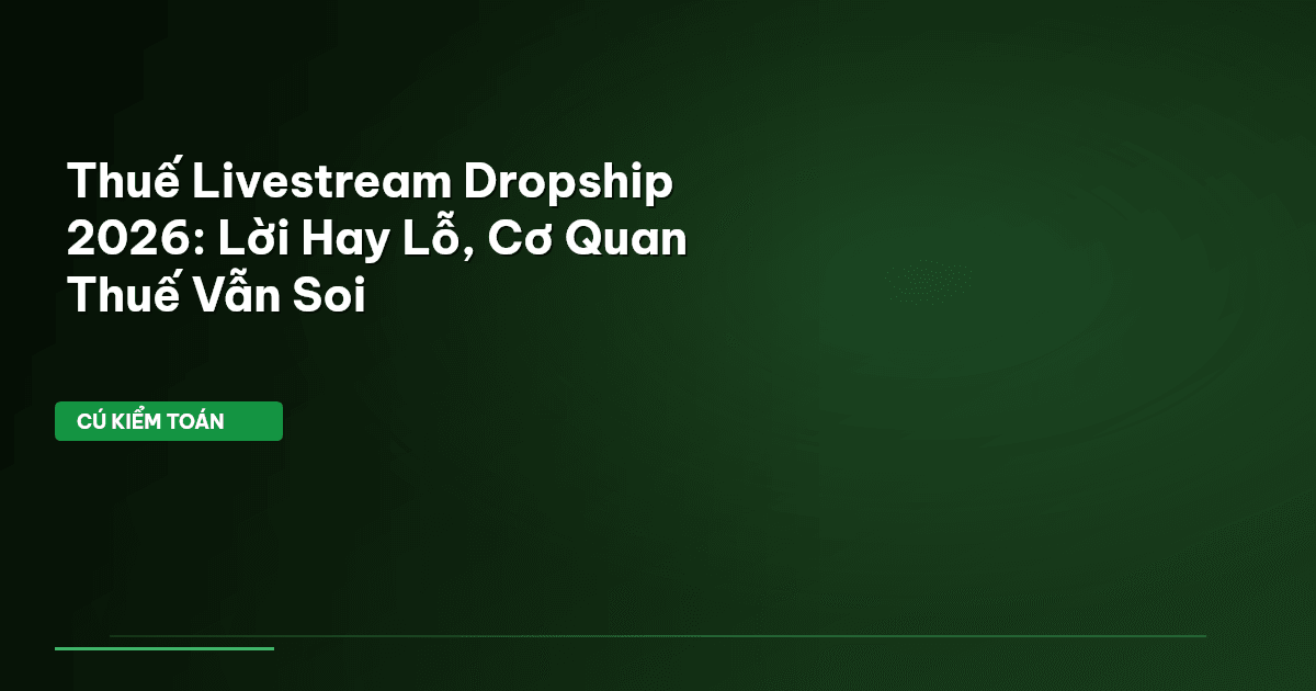 ⏱️ 9 phút đọc · 1718 từ Giới Thiệu: 2026 – Khi Mọi Giao Dịch Online Đều Có Mã Số Thuế Cú Kiểm Toán trở lại. Lần này, chúng ta soi chiếu kỹ lưỡng về nghĩa vụ thuế của người bán hàng livestream và dropshipping trên thương mại điện tử (TMĐT) từ năm 2026. Một năm bản lề. Một cú hích lớn từ cơ quan thuế. Nhiều người lầm tưởng bán hàng online là "tự do", không ai kiểm soát. Đã qua rồi cái thời đó. Từ 2026, cơ quan thuế sẽ siết chặt hơn bao giờ hết, đặc biệt với những hình thức kinh doanh "lách luật" n…