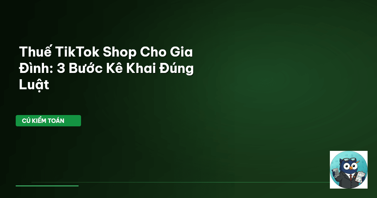 ⏱️ 9 phút đọc · 1724 từ Giới Thiệu: Kỷ Nguyên Bán Hàng Online — Thuế Cũng Phải 'Online' Kinh doanh trên TikTok Shop đang bùng nổ. Từ những món đồ handmade nhỏ xinh đến các sản phẩm gia dụng, mọi người đang tận dụng nền tảng này để kiếm thêm thu nhập. Nhiều người nghĩ, bán hàng 'gia đình', nhỏ lẻ thì không cần lo về thuế. Đây là nhận định KHÔNG CHÍNH XÁC. Cú Kiểm Toán đã 'soi kỹ' và khẳng định: Hoạt động kinh doanh trên TikTok Shop, dù quy mô nào, đều thuộc diện chịu sự quản lý của Luật Quản lý T…