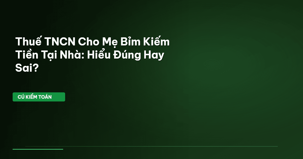 Bài viết này sẽ "soi" kỹ từng khía cạnh thuế liên quan đến thu nhập của mẹ bỉm sữa kiếm tiền tại nhà. Từ Thuế Thu nhập cá nhân (TNCN) đến Thuế Hộ kinh doanh, Cú sẽ hướng dẫn bạn cách hiểu đúng, tính đúng và nộp đúng. Quan trọng hơn, bạn sẽ biết cách tối ưu nghĩa vụ thuế một cách hợp pháp, giúp giữ lại nhiều hơn trong túi mình. Chuẩn bị sổ sách, chúng ta bắt đầu!