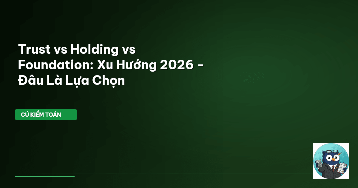 ⏱️ 14 phút đọc · 2785 từ Giới Thiệu: 2026 — Năm Bản Lề Cho Quản Trị Tài Sản Thời điểm 2026 đang đến gần, và với nó là những xu hướng mới trong quản trị tài sản và tối ưu thuế tại Việt Nam. Thị trường biến động, chính sách thuế ngày càng minh bạch hóa, buộc các cá nhân, doanh nghiệp lớn phải nhìn nhận lại chiến lược của mình. Để đảm bảo tài sản được bảo vệ vững chắc và kế thừa hiệu quả, việc hiểu rõ các cấu trúc như Trust (Quỹ Tín Thác), Holding Company (Công ty Mẹ), và Foundation (Quỹ) là điều t…