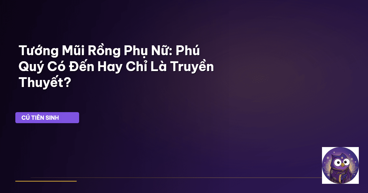 ⏱️ 10 phút đọc · 1933 từ Giới Thiệu: Bí Ẩn Về Tướng Mũi Rồng Và Phúc Khí Phụ Nữ Chào hiền hữu, Cú Tiên Sinh nhận thấy nhân gian thường truyền tụng những câu chuyện huyền bí về tướng mạo, đặc biệt là dáng mũi, như một bản đồ tiên tri về vận mệnh đời người. Trong đó, "tướng mũi rồng" luôn được xem là một bảo vật, ẩn chứa lời hứa về phú quý và danh vọng, đặc biệt là đối với phái đẹp. Liệu đây có phải là một chân lý bất biến, hay chỉ là những áng mây bồng bềnh của truyền thuyết? Người xưa dạy: "Nhất…