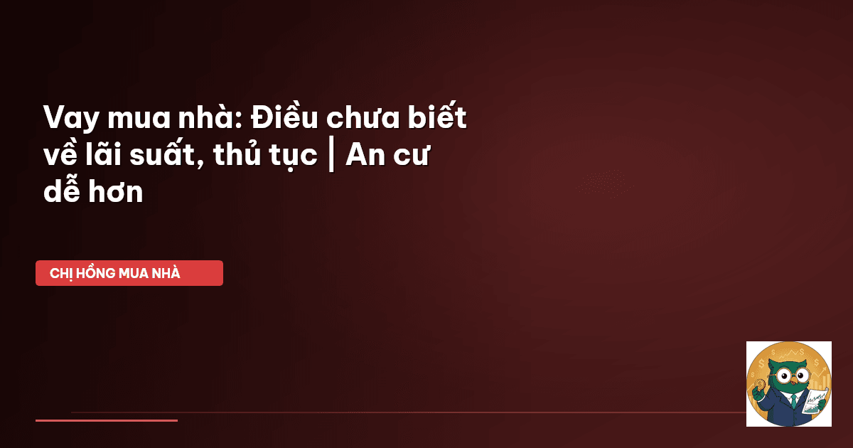 ⏱️ 12 phút đọc · 2267 từ Chào cả nhà, Chị Hồng đây! Bạn có đang loay hoay với giấc mơ an cư? Mấy nay, Chị Hồng nhận được nhiều câu hỏi của các mẹ bỉm, các cặp vợ chồng trẻ về chuyện vay mua nhà. Ai cũng chung một nỗi lo: "Liệu có vay được không?" , rồi "Lãi suất bây giờ thế nào?" , "Thủ tục có rắc rối lắm không Chị Hồng ơi?" . Nghe mà thương lắm luôn! Giấc mơ an cư không của riêng ai, đặc biệt là khi mình có gia đình nhỏ. Nhưng đôi khi, chính những rào cản tài chính, những con số lãi suất nhảy m…