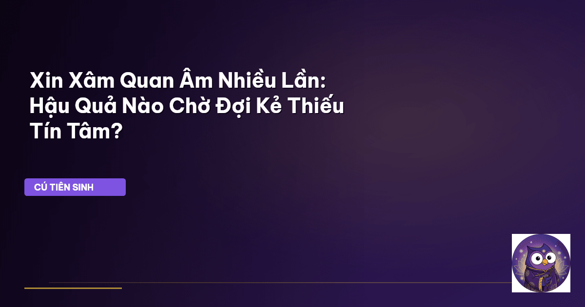 Như vậy, quý vị đã cùng Cú Tiên Sinh vén màn bí ẩn đằng sau việc xin xâm Quan Âm nhiều lần. Chúng ta đã hiểu rằng, hành động này không phải là dấu hiệu của lòng thành kính mà tiềm ẩn nguy cơ gây nhiễu loạn tâm trí và phản tác dụng tâm linh. Tín tâmsự thành kính chân thật mới là chiếc chìa khóa vạn năng mở ra cánh cửa của sự chỉ dẫn từ cõi thiêng liêng.